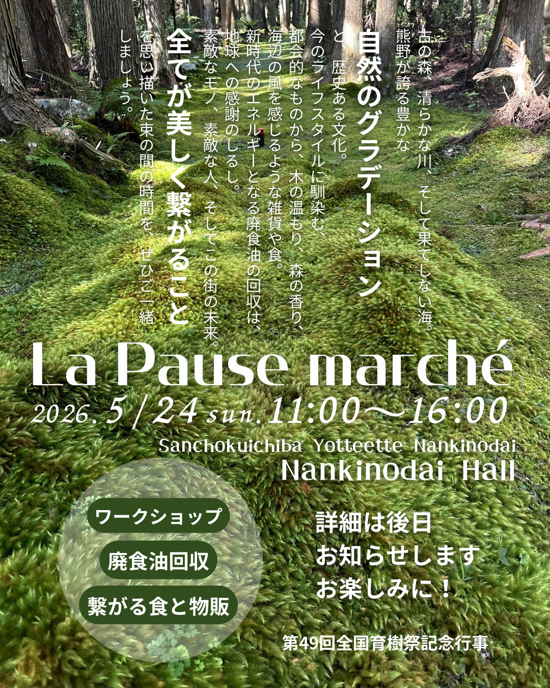 | 7 | 令和7年6月15日(日) | 森の願いspecialイベント -大切なものを未来へつなげようー |